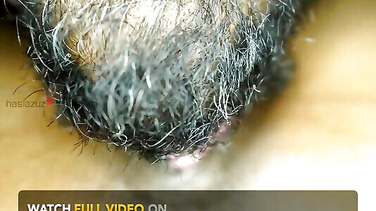 Extreme Close-up of Wet Hairy Vagina with Dildo