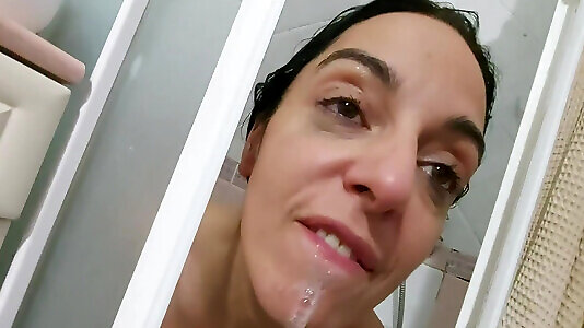 Amateur girlfriend mouth fucked and pissed on her in shower