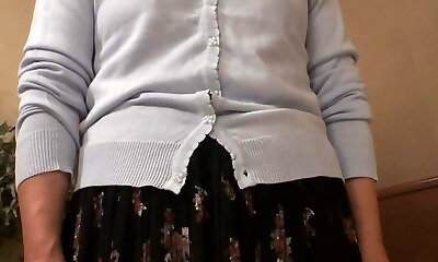 Cardigan milf strips for an erotic Japanese nail