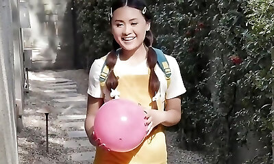 Teen Goddess Ella Voneva Gets Her Asian Pussy Jammed By Diamond Banks' Monstrous Strap On - LittleAsians FFM Threesome