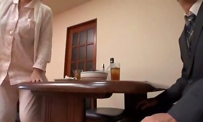 Japanese Milf Penetrates The Boss While Her Husband Sits At The Table!