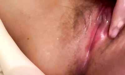 Record the virgin puss after a clitoral orgasm, the slimy joy button is still bulging