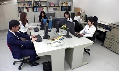 Mischievous mega-bitch Asian mature milf teasing the big dicks to fuck her wet pussy in the office