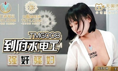 Asian WIFE Cheating with plumber and SUCKING & Boning for Creampie!
