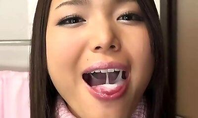 Alluring Japanese chick Noeru Mitsushima guzzles a hard hai