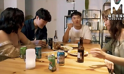 Hot Foursome Sex! Asian Duo Swap! No Condom, Creampie